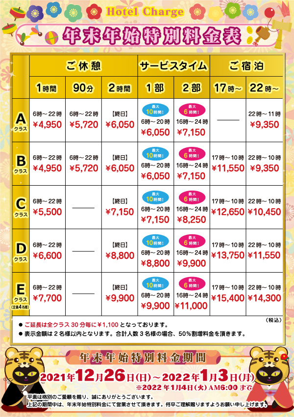 【年末年始特別料金のお知らせ】